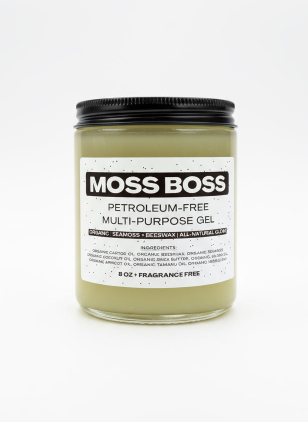 Introducing MOSS BOSS Gel - a 100% organic, multi-purpose gel infused with seamoss and an organic herbal blend. Perfect for sensitive skin, eczema, and all skin types, this gel provides deep moisture without the use of petroleum. Every purchase supports our fundraiser, Justice for Kioni!